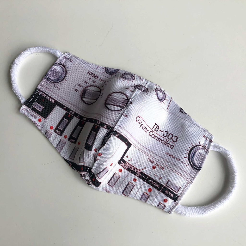 303 Face Mask, Bass Synth Fitted Face Cover. Here's the deal kids, I hate wearing masks, but this one's actually really comfortable. For me to say that, means a lot - it feels nice on and isn’t annoying. The interior layer is a very soft bamboo, the same fabric we use for our scarves; the exterior is a tightly woven poly that is recommended to keep moisture away and the crud out. Yep, it's a little spendy for a mask, but there's over 2 hours of work in each to get it just right.