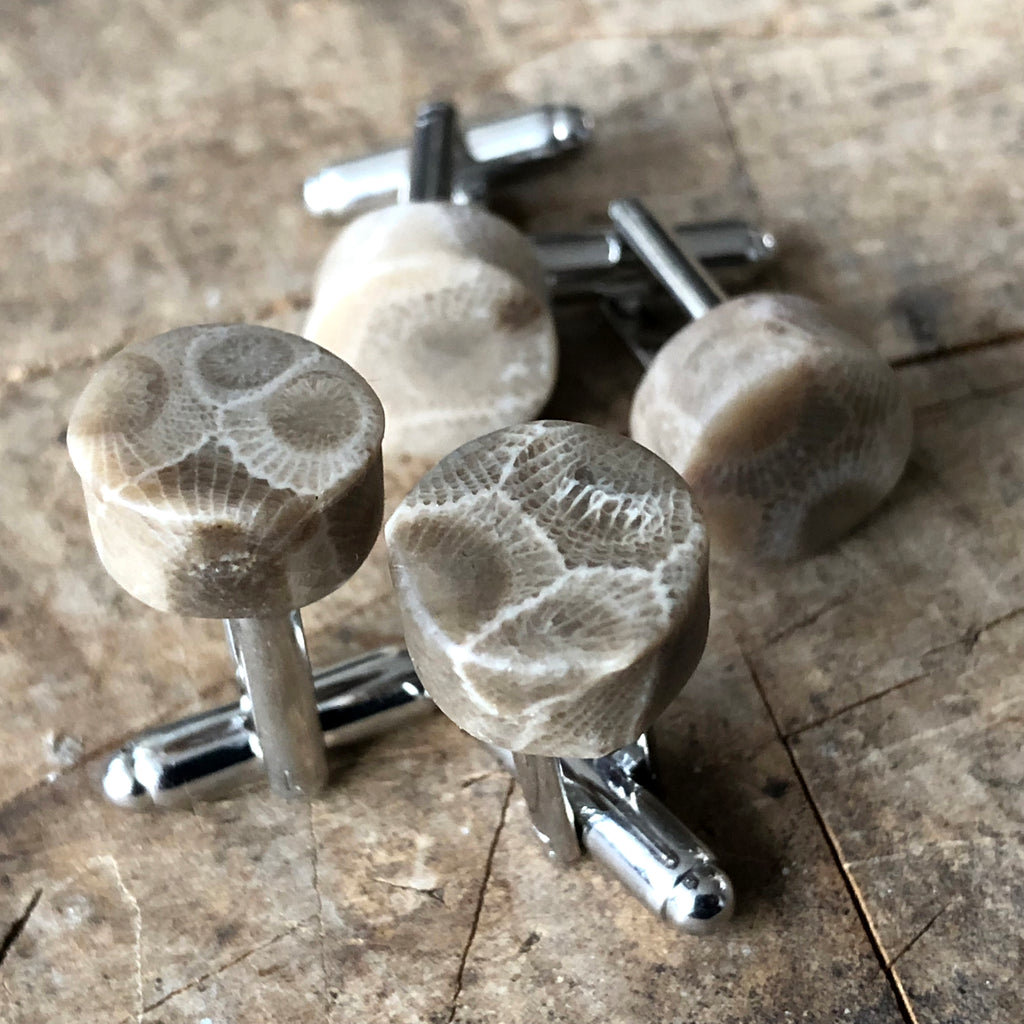 Petoskey Stone Cufflinks, fossilized coral cufflinks. Wear a part of Michigan's prehistoric-history!