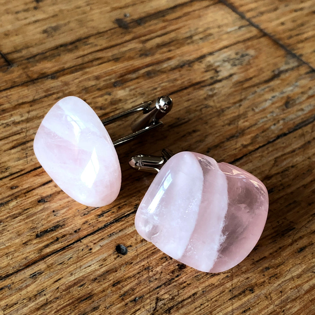 Rose Quartz Cufflinks, Pink Stone Cuff Links