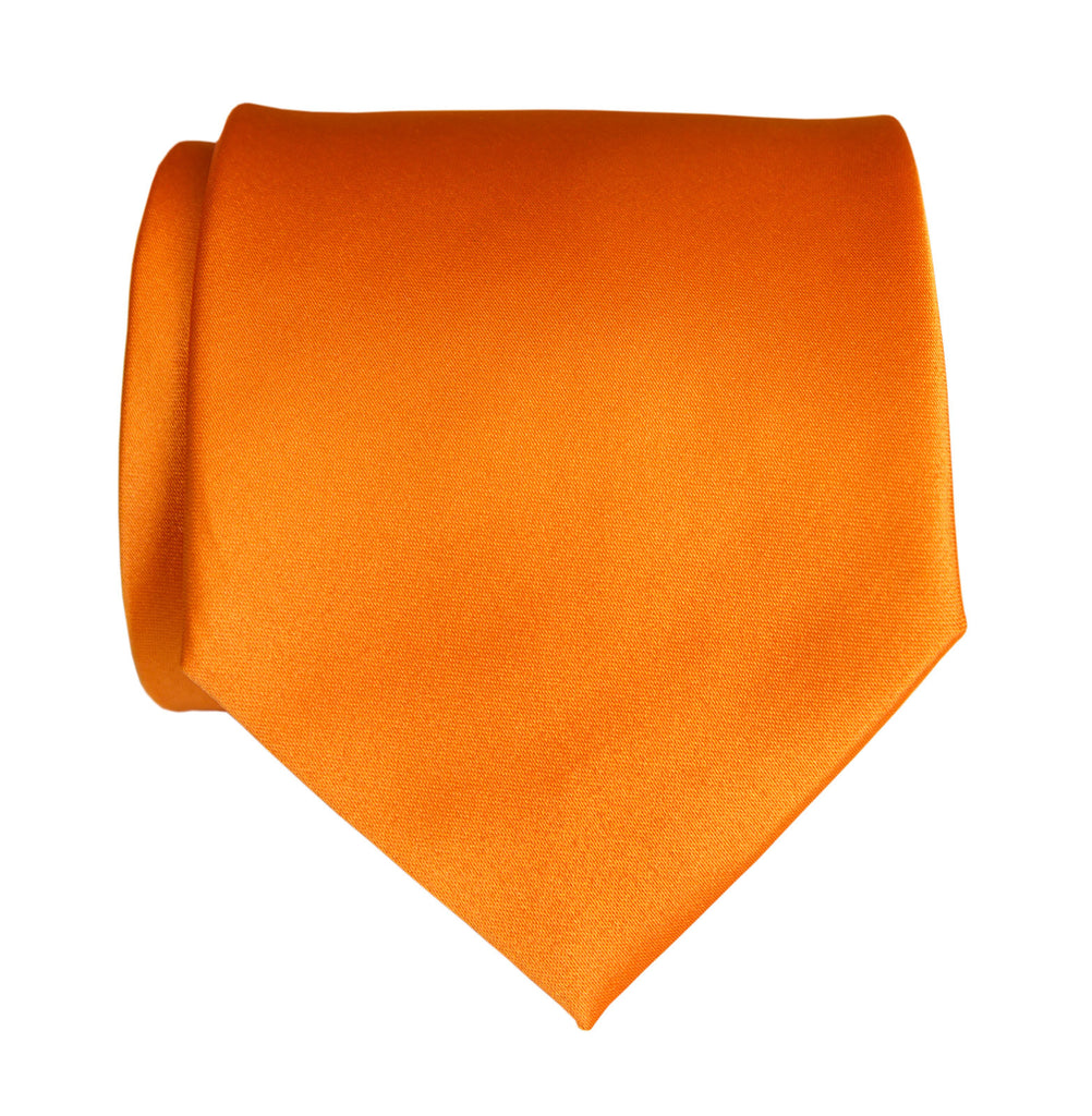 Carrot Necktie: Orange Solid Color Satin Finish Tie, No Print. Perfect for any formal occasion, or for when you need a plain, orange necktie in your wardrobe. How can this possibly be hard to find? (Well it is.) But fear not, because we have it! Ties are bias cut, hand rolled, and hand sewn with a hidden slip stitch, ensuring a perfect knot every time.