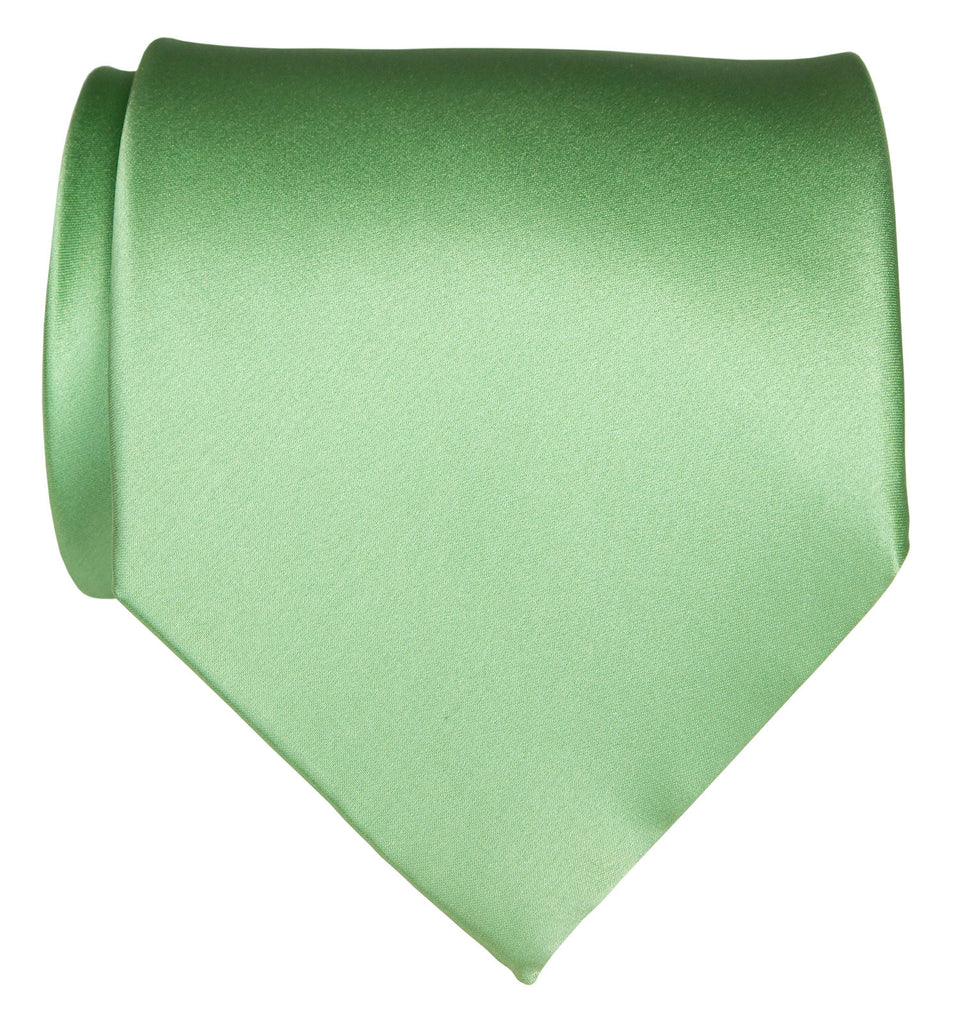 Clover Green Necktie. Solid Color Satin Finish Tie, No Print