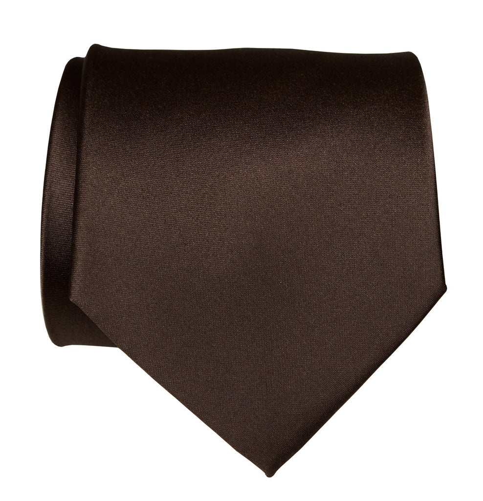 Dark Brown Necktie: Solid Color Satin Finish Tie, No Print. Perfect for any formal occasion, or for when you need a plain, dark brown tie in your wardrobe. How can this possibly be hard to find? (Well it is.) But fear not, because we have everything, and in seven sizes! Ties are bias cut, hand rolled, and hand sewn with a hidden slip stitch, ensuring a perfect knot every time.