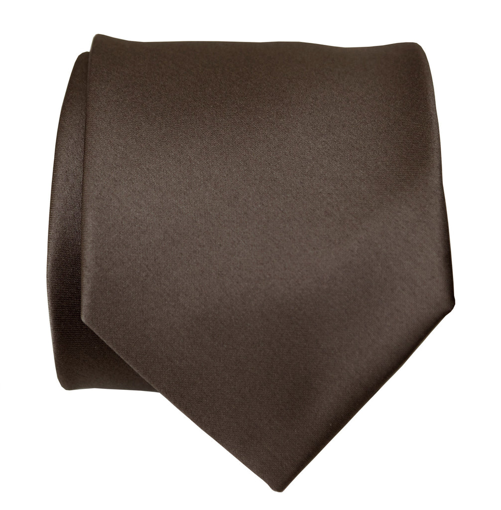 Driftwood Necktie: Solid Color Dark Brown Satin Finish Tie, No Print. Perfect for any formal occasion, or when you need a plain, dark brown tie in your wardrobe. How can this possibly be hard to find? (Well it is.) Ties are bias cut, hand rolled, and hand sewn with a hidden slip stitch, ensuring a perfect knot every time.