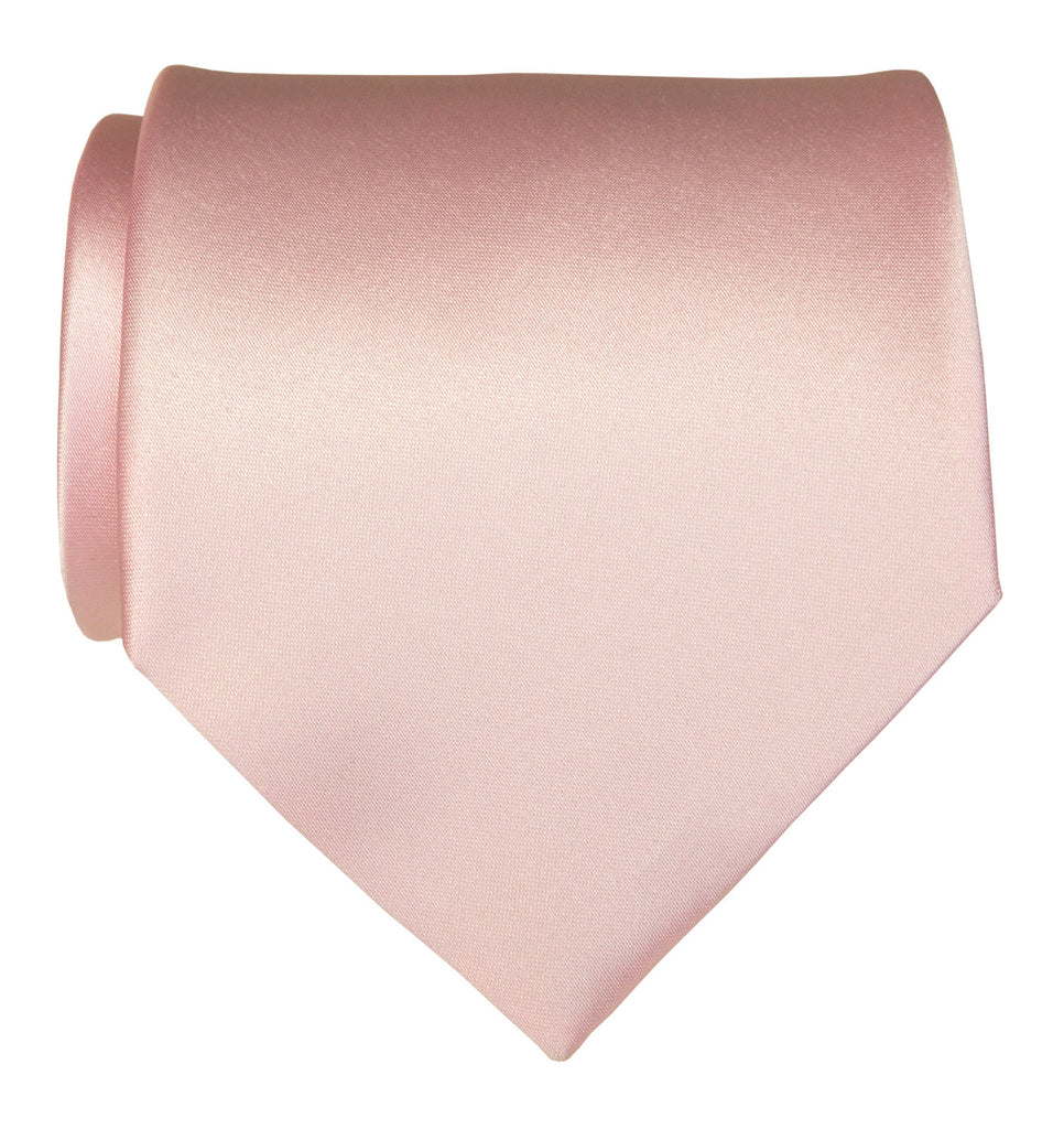 Light Pink Necktie: Solid Color Satin Finish Tie, No Print. Perfect for any formal occasion, or for when you need a plain, light pink necktie in your wardrobe. How can this possibly be hard to find? (Well it is.) But fear not, because we have everything, and in seven sizes! Ties are bias cut, hand rolled, and hand sewn with a hidden slip stitch, ensuring a perfect knot every time.