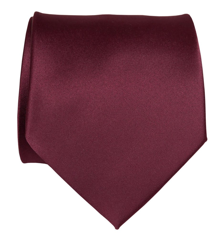 Maroon Necktie: Solid Color Dark Red Satin Finish Tie, No Print. Perfect for the elegant groom, groomsman or when you need a plain, dark red tie in your wardrobe. How can this possibly be hard to find? (Well it is.) But fear not, because we have it! Ties are bias cut, hand rolled, and hand sewn with a hidden slip stitch, ensuring a perfect knot every time.