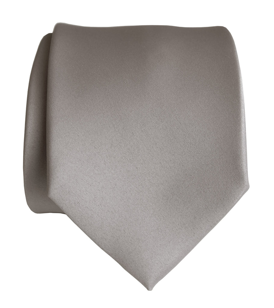 Oyster Necktie. Solid Color Light Grey Satin Finish Tie, No Print