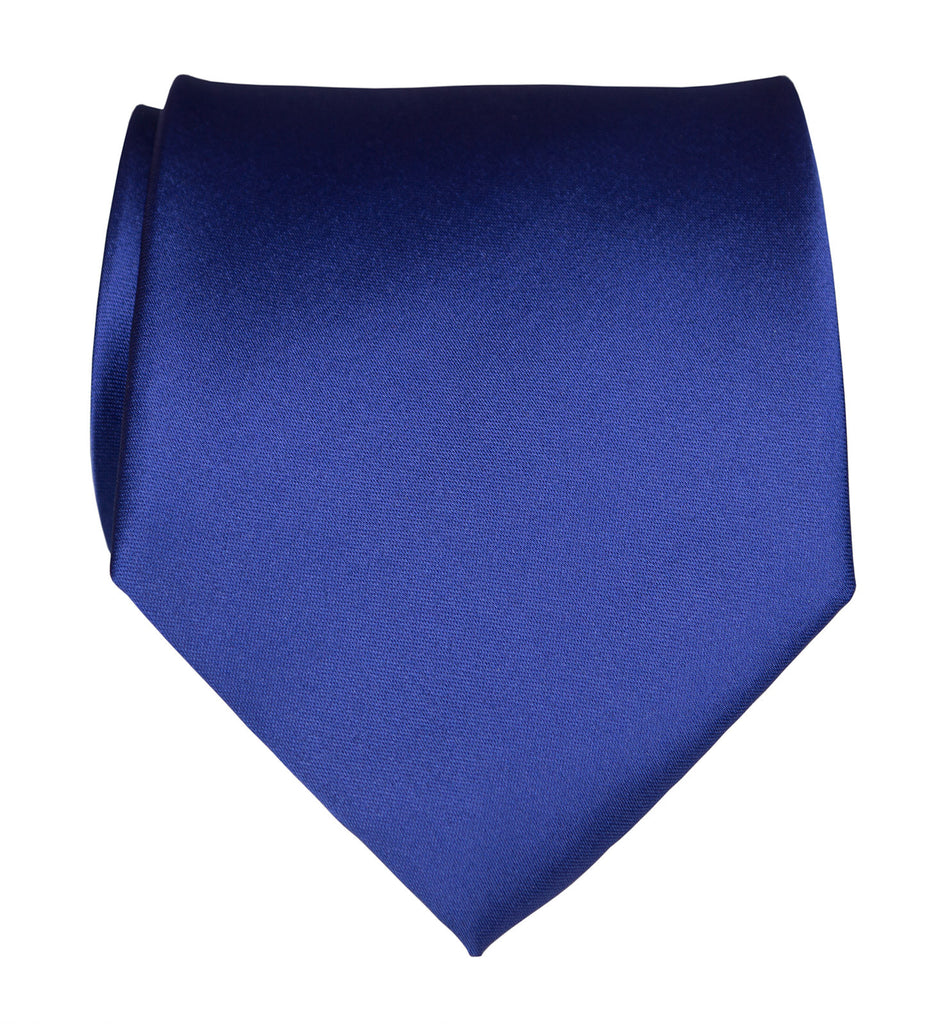 Royal Blue Necktie: Medium Blue Solid Color Satin Finish Tie, No Print. Perfect for any formal occasion, or for when you need a plain, medium blue tie in your wardrobe. How can this possibly be hard to find? (Well it is.) But fear not, because we have everything, and in six sizes! Ties are bias cut, hand rolled, and hand sewn with a hidden slip stitch, ensuring a perfect knot every time.