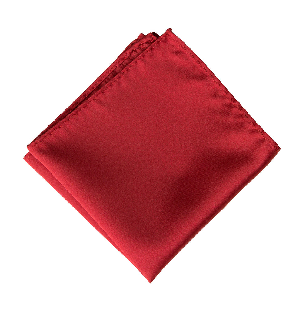 Crimson Red Pocket Square: Solid red satin finish men's pocket square with no print. Perfect for any formal occasion! How can a medium red pocket square possibly be hard to find? Well, those elusive hankies sure can be. Fear not, your search is over, we have everything here just for you! Plus, our prices are kind to you and your pocket.