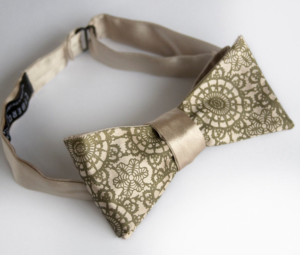 Cottage Lace Print Bow Tie. Doily Print Bowtie. A customer favorite choice for the groom, groomsmen, wedding parties or any elegant occasion! Tatted lace doily stars, pinwheels and distressed pizzelle lace create a gorgeous, unique pattern that will be sure to wow even the most discerning gent!
