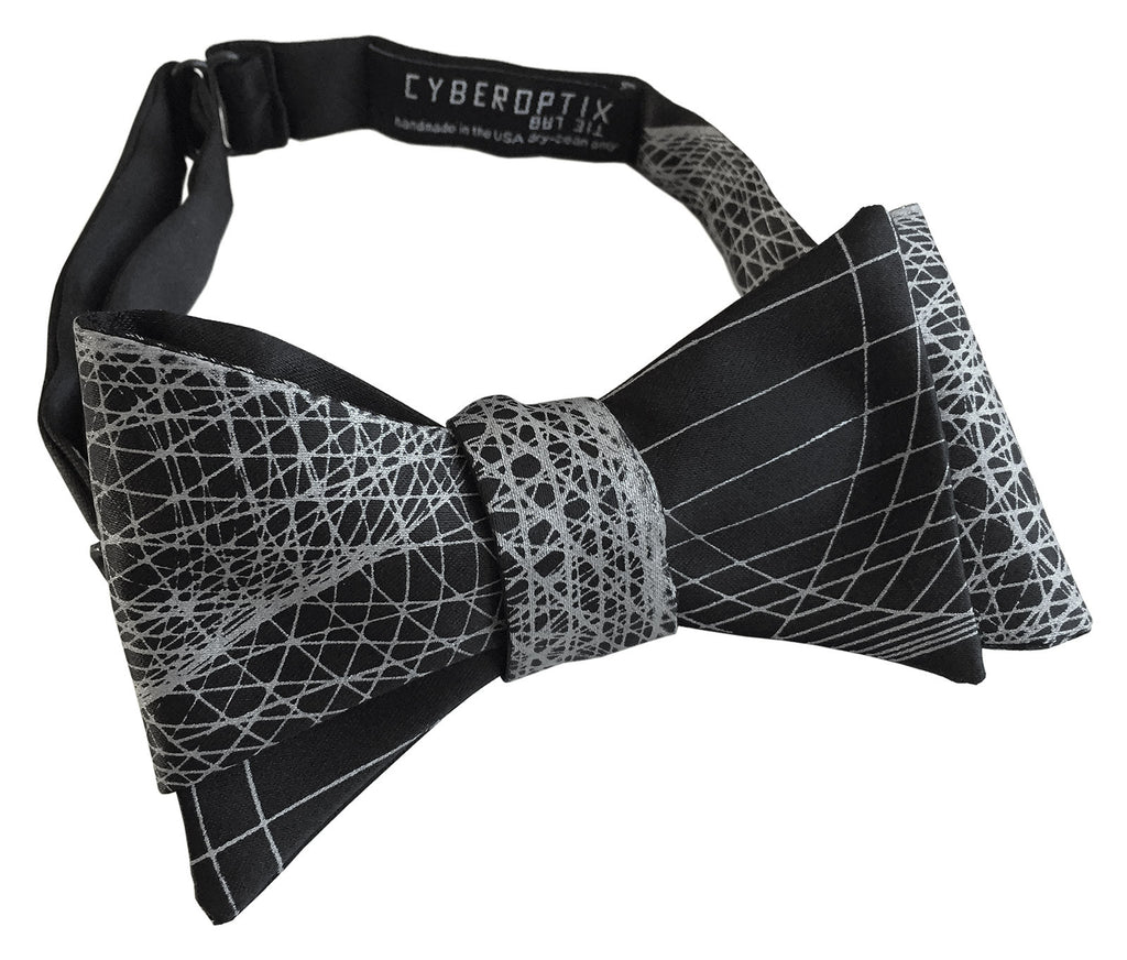 Wormhole Print Op Art Bow Tie. Converging lines geometric print silkscreen bowtie. Perfect for lovers of math, geometry, science, lasers and cool 60's psychedelic prints.