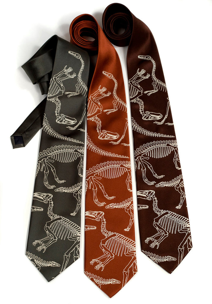 Have we any paleontologists in the house? Impress the hautest of fashionistas and natural history buffs at the same time. Three different dinosaur skeletons climb and tumble - shown: scelidosaurus, iguanodon bernissartensis and compsognathus longipes!