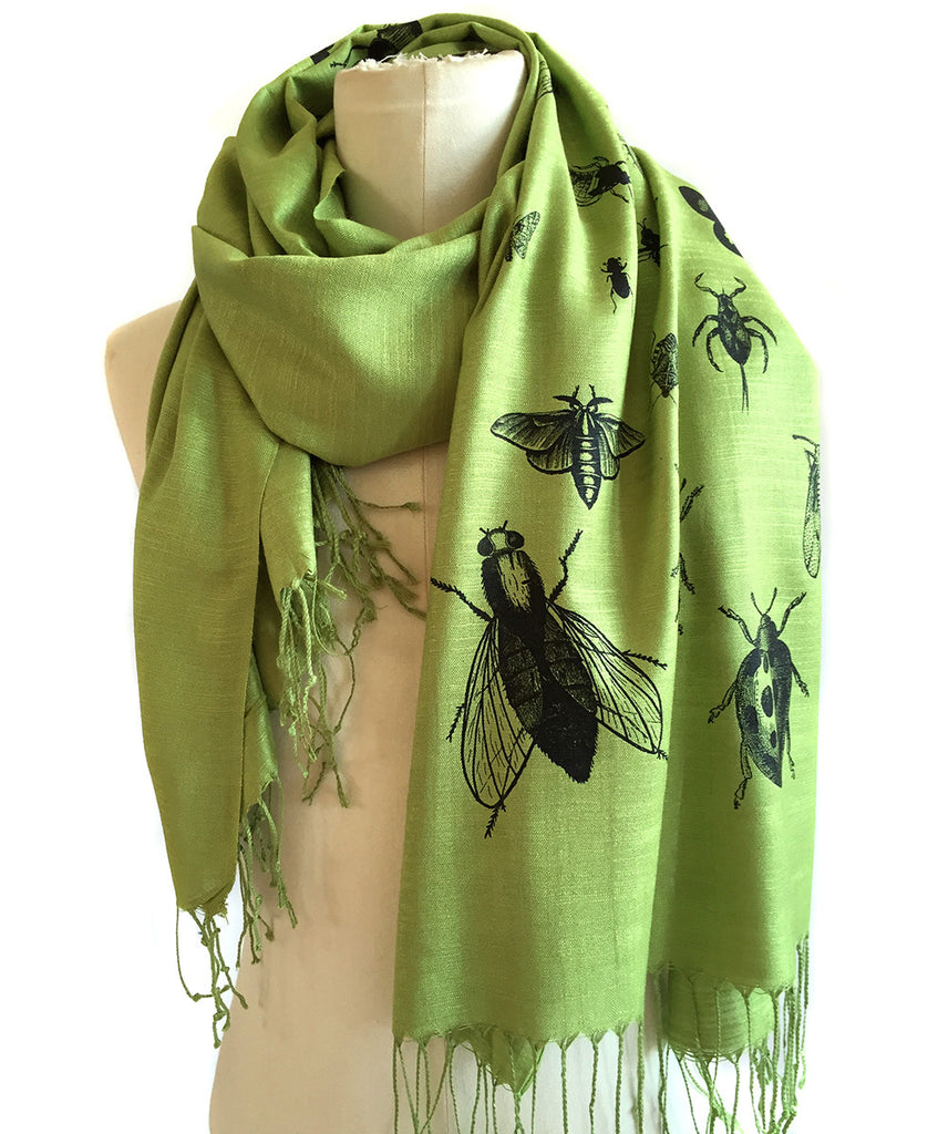 Insect Scarf, Buggy Linen-Weave Pashmina. Whether you have a bug in your code, an affinity for insect study, entomology, or want a pesky bug to go away, this scarf is sure to delight. Insect illustrations are derived from actual scans of some of our very own studio...visitors...combined with 18th and 19th century curiosity drawings.