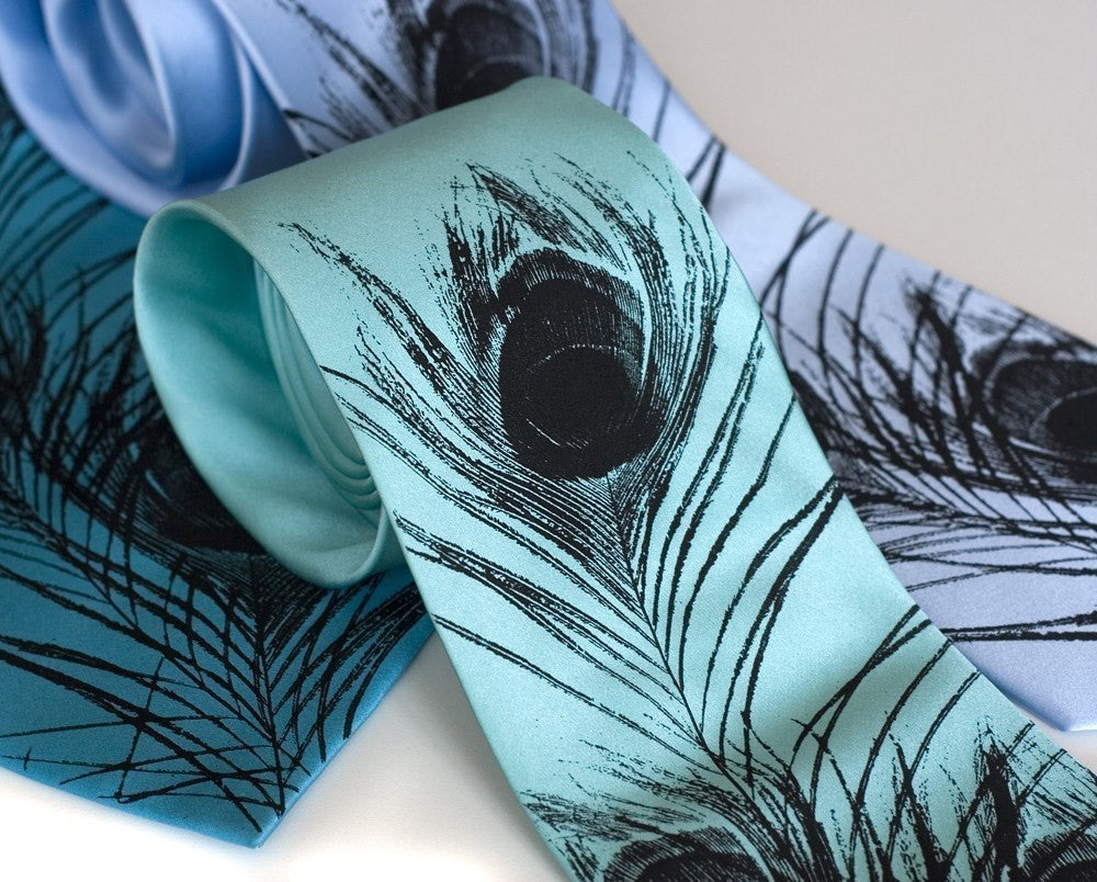 Peacock Feather Silk Necktie. Native to India and Sri Lanka, the elegant and exotic peafowl have been the muse of human adornment for thousands of years, from our early history, to art deco, to modern craft. Peacocks can be naughty little birds, the "successful" males keeping a harem of 5 peahens. Oh the scandal!