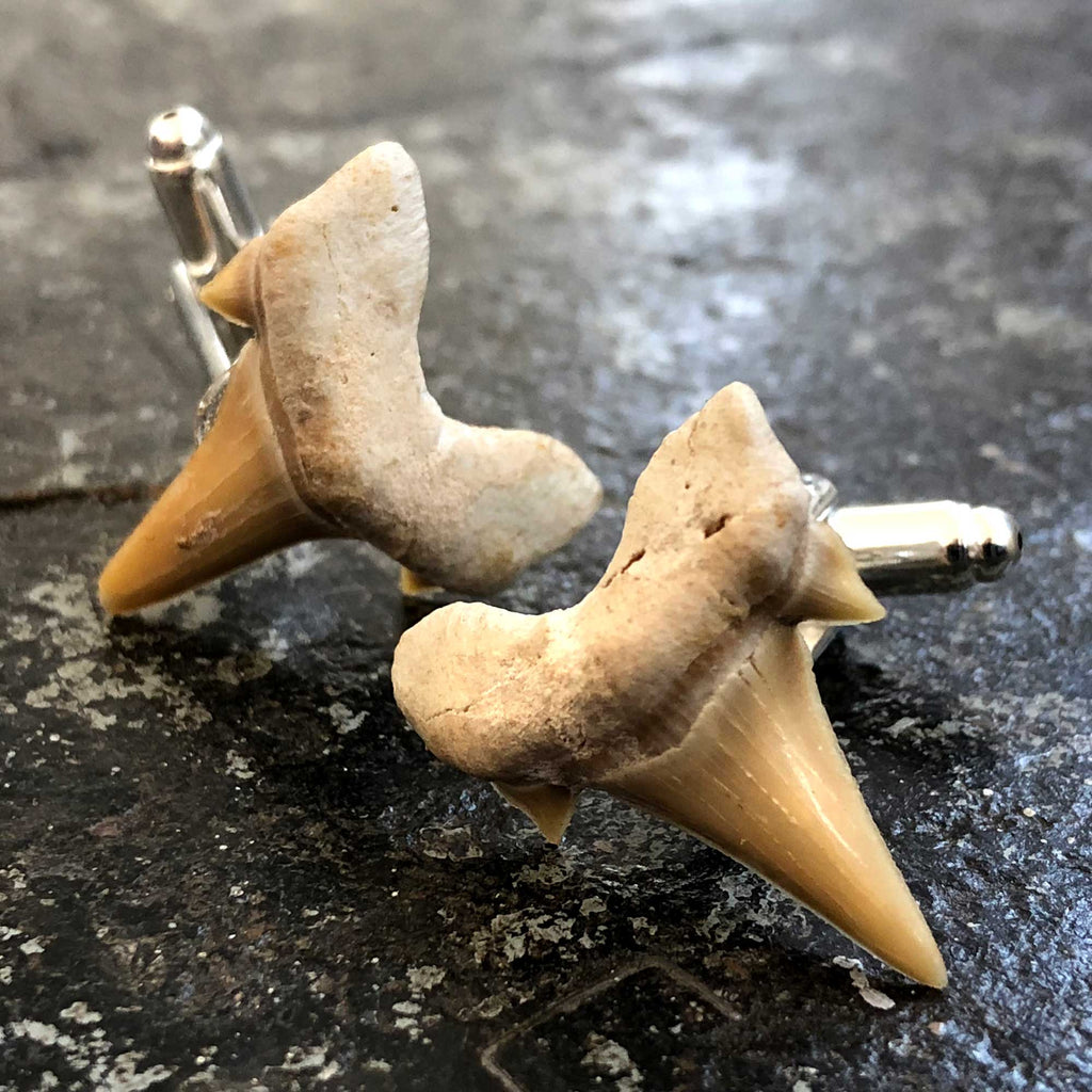 Shark Tooth Cufflinks, men's fossil cufflinks