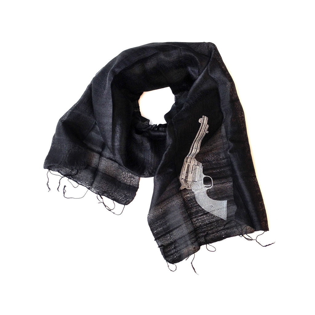We know bringing guns to the office isn't exactly kosher anymore, but hiding this little antique revolver inside your jacket just may be acceptable. End of the gun points up to the wearer. The print is placed at one end and measures approx. 4" x 7".