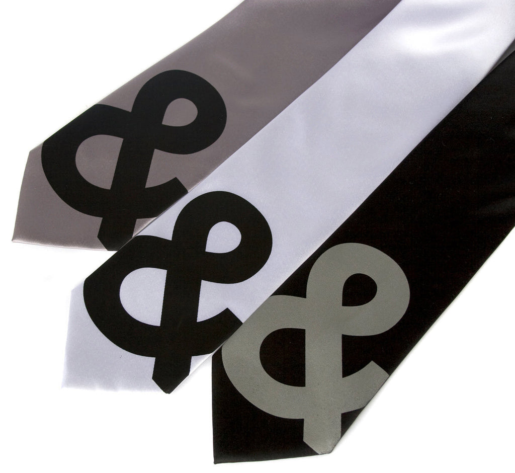 Ampersand silk necktie. "&." Minimalist Helvetica "and symbol" silkscreen tie.