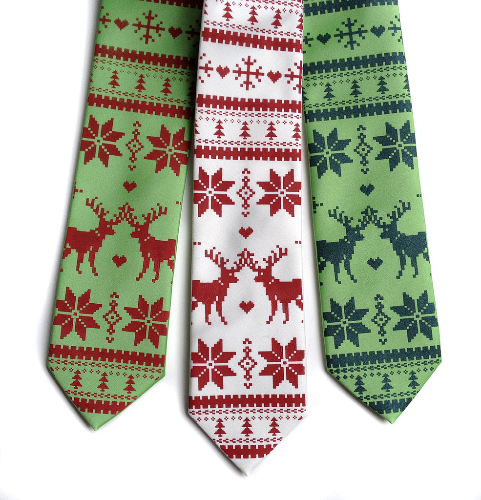 Christmas Sweater Print Necktie. Level up that ugly holiday sweater party game with an Ugly Holiday Sweater tie! Ugly Sweater Parties are all the rage, but sometimes you still need to wear a tie. Now you can do both.
