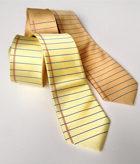 College Ruled Silk Necktie. Notebook Paper tie. Are you Too Cool for School? Hot for Teacher? We present to you, our lined paper necktie, because you've got the Write Stuff. We dare you not to doodle! Not a fan of the laptop or tablet? No writing a novel on your iPhone? Are you a lefty and have love that inky hand? Whether you enjoy penning all your hopes and dreams, doodling masterpieces or simply jotting down a reminder to get cat food, we have nostalgia for the good ol' deforesting paper, and think you should too. Want some indelible love? Give your kid a sharpie and have him or her go to town and make the best Christmas or Father's Day gift ever.