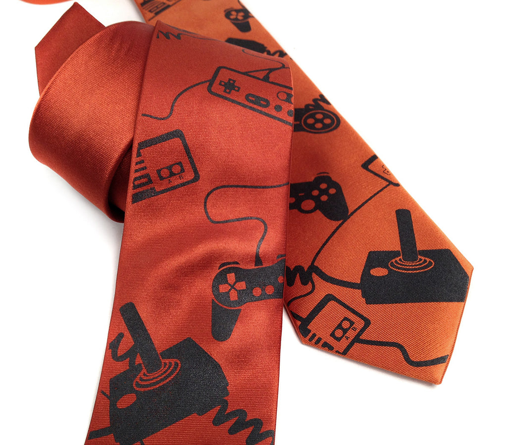 Are you a control freak? This retro tie delight features gaming controllers through the decades, including our own illustrations of Atari, Nintendo, NES, Playstation, Xbox and more! And of course, the squiggly, wiggly cords that inevitably tangle to the most delicious electronic spaghetti. The best geek chic gift ever. Don't let a formal event or office gig get in the way of your love of gaming. We're here to help.