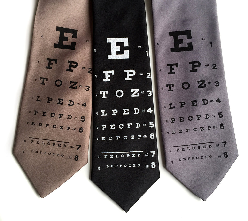 Eye Chart necktie. Need to do an eye test on the fly? We present to you, yet another in our series of vintage paper ephemera emulation ties! Our classic Snellen Eye Chart tie will make quite a SPECTACLE because we SEE you have great style. Don't be BLIND to bold, graphic fashion!