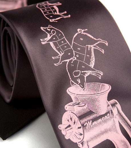 Meat grinder silk necktie - Mmmmmmmmmeat! Love sausage or copious amounts of pork? Bring home the bacon in this one. Perfect for butchers, chefs and carnivores. Swine dining indeed!