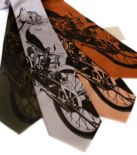 Motorcycle Necktie, mens motorbike tie. Velocette Motorcyle. Super-detailed line-drawing, illustrating the innovative 1950’s, 350cc hand-built motorcycle.
