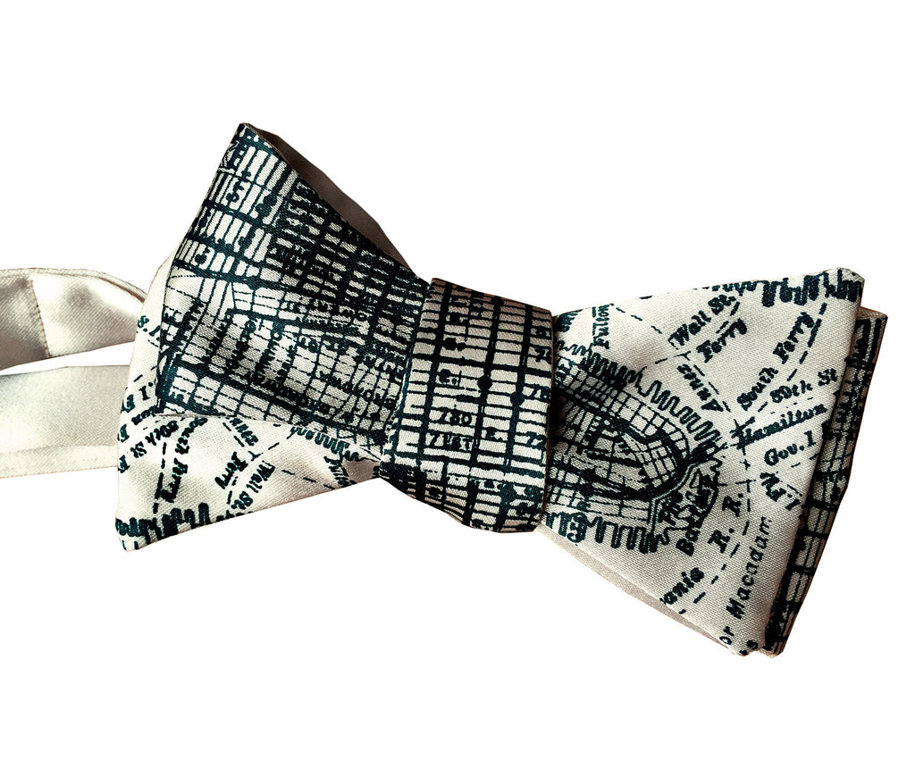 New York City Map Bow Tie. Brooklyn, Manhattan subway lines and streets. Lower Manhattan, NYC streets & subway map bowtie. Adapted from original 1920s maps. Perfect for newcomers, ex-pats, fans from afar and long-time New York City dwellers alike. Let your love for the city accompany you to your next black tie event!