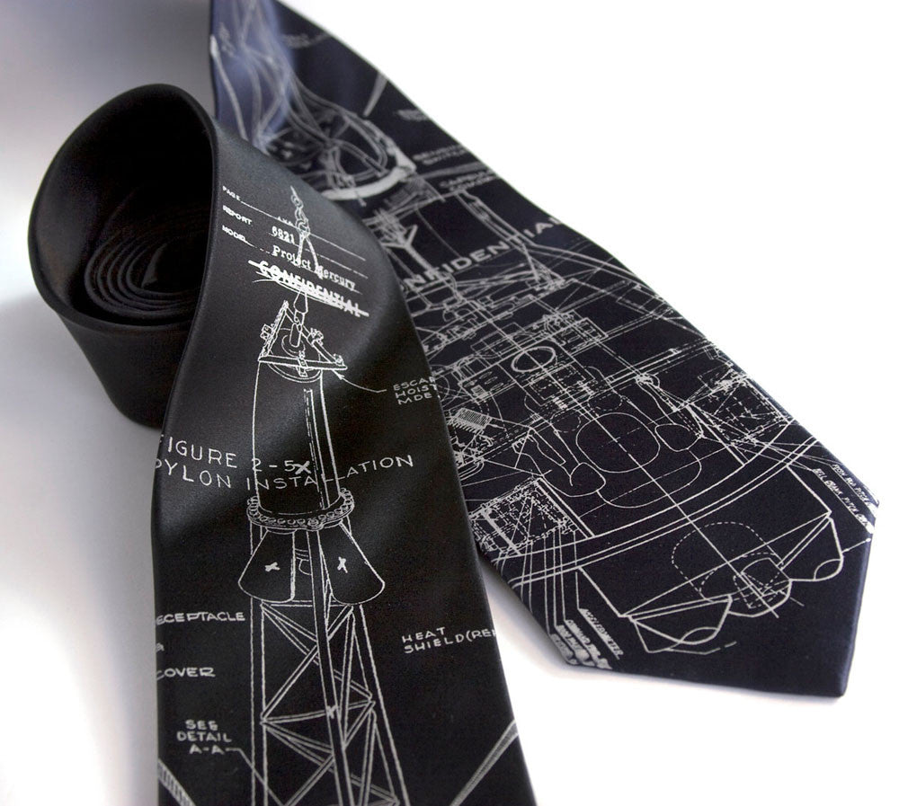 Project Mercury Necktie, space exploration silk necktie. This is the second in our series of "Rocket Science" designs.