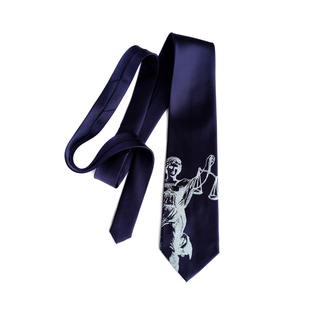 Scales of Justice Silk Necktie. Lady Justice is the personification of the moral force in judicial systems. While some people love to hate those in the law profession - if you have only love for the law-inclined person in your life, this tie is the perfect way to show it!