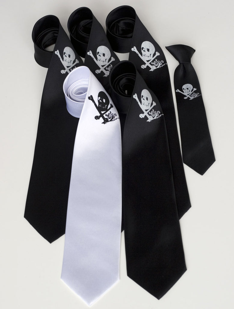 Skull + Bones Microfiber Necktie. A demure little skull and crossbones printed high on the tie to be visible under a waistcoat or jacket.