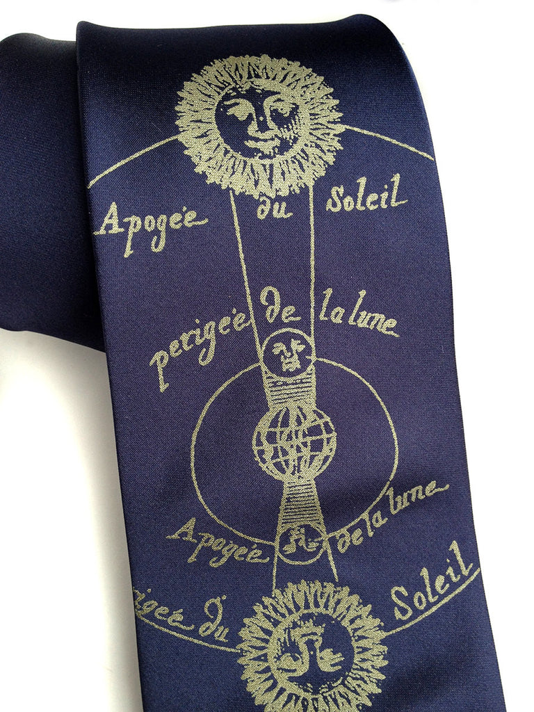 Our 17th century French script celestial diagram tie is a perfect way to impress lovers of astronomy, astrology or any study of the heavens.