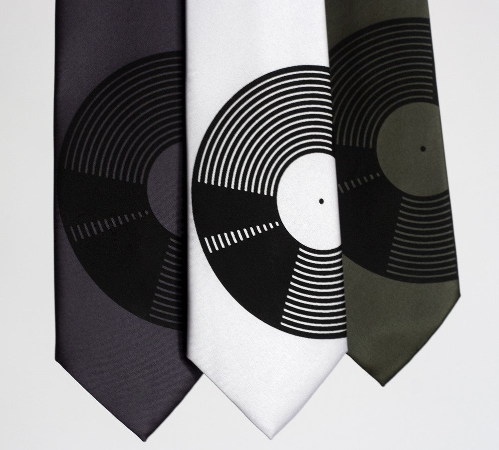 Vinyl Record necktie. Perfect for DJs, producers, musicians and audiophiles of all kinds! Whether you're playing out new techno records or dusting off Elvis, your friends will be envious of this one. Vinyl does sound better, and is more fun to play. Original illustration.