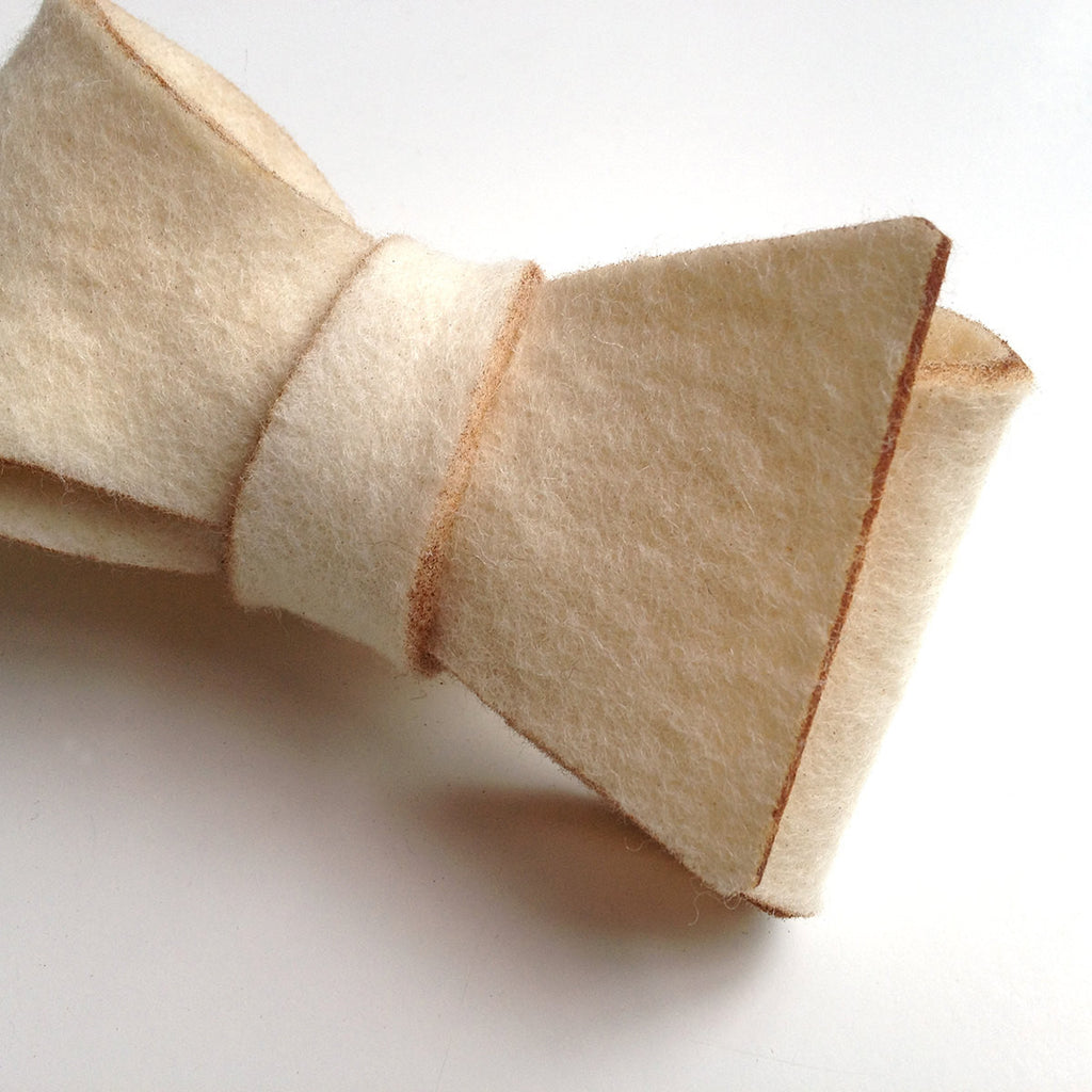 Made from industrial 100% wool felt, these bow ties are sure to impress the most hard-to-buy-for designer, dapper gent or staunch minimalist who has everything. This ain't your momma's craft felt - this is "MAN FELT" - it is a thick, sturdy, pressed or needle punched felt, used in industry for vibration absorption and abrasion resistance. Ready for gifting, each purchase will include our iconic Forest Stewardship Council Certified blond wood keepsake (and safekeeping) box - free with your purchase of a felt tie!