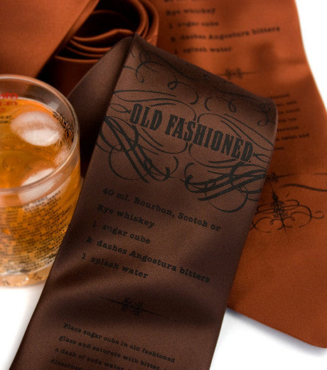 With the resurgence of finely crafted old-timey cocktails, always have your favorite drink recipe on hand (or around your neck)! The Old Fashioned is a type of cocktail made by muddling dissolved sugar with bitters then adding bourbon, rye, scotch, and a twist of citrus rind. We admit having a liking for some tasty sauce -- only after work of course! Ties that proclaim your love for all things "spirited" are notoriously not so classy. It is our humble duty as necktie designers to change that. Original illustration.