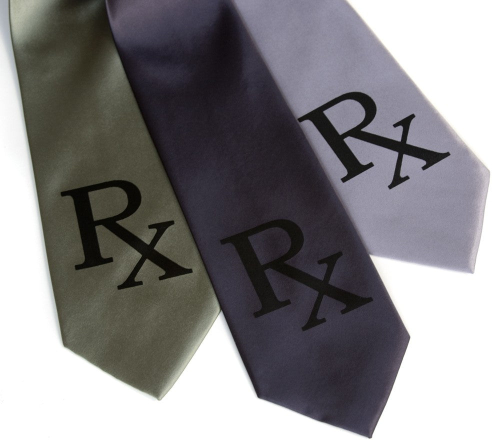 Prescription Rx Silk Necktie. Prescription for Success! This is the "minimalist" edition. Impress the pharmacist, doctor, nurse, veterinarian, dentist, optometrist, psychiatrist or medical student in your life. "Rx" is commonly used as an abbreviation for a prescription drug - shorthand for the Latin for "recipe." Original illustration based on a vintage prescription pad.