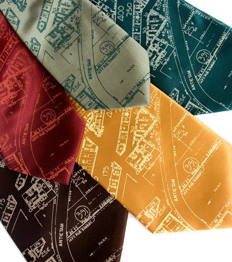 Why did it take us so long to release map ties of our very own hometown? Well, we're a little tired of seeing the first thing that comes up in Google Image Search slapped on shirts and accessories too. After searching flea markets and resale shops literally for years, we finally found a stash of incredible source materials we felt proud to work with -- to make a unique design just for you. xo