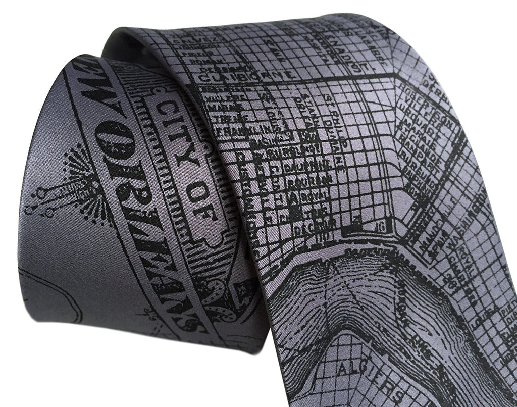 New Orleans Map Silk Necktie. Whether you hang on Bourbon or in the Bywater, rock this NOLA vintage map print! We have the classic, celebratory Mardi Gras colors: Purple, green and gold, as well as more subtle hues for the devout minimalist. Adapted from an original 1910 vintage map. Makes a perfect gift for cartographers, history buffs, New Orleans dwellers and any lover of the city, its food, music, art and cultural history!