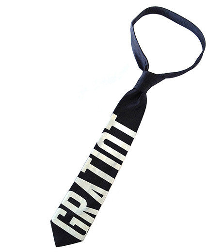 This print extends mid-way up on the tie, approx. 15" from the bottom point; can be seen from under a vest or jacket depending on how it is tied - or concealed if you prefer. *Please note there is some translucency in the ivory-cream printing on black - to be faithful to the appearance of the original sign.