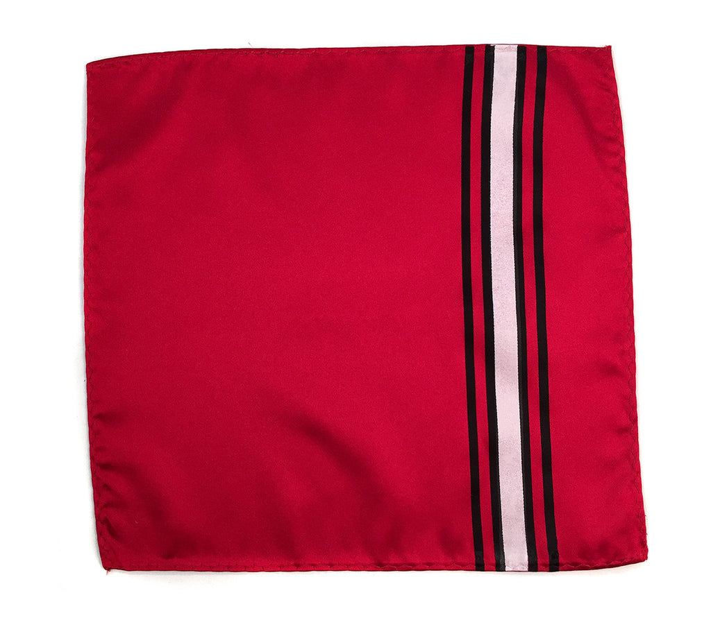 Racing Livery pocket square: Scuderia racing stripes handkerchief. Inspired by the unmistakable Italian livery in red, black and white. Don't have a 458 Italia in your driveway? This is the next best thing, right?