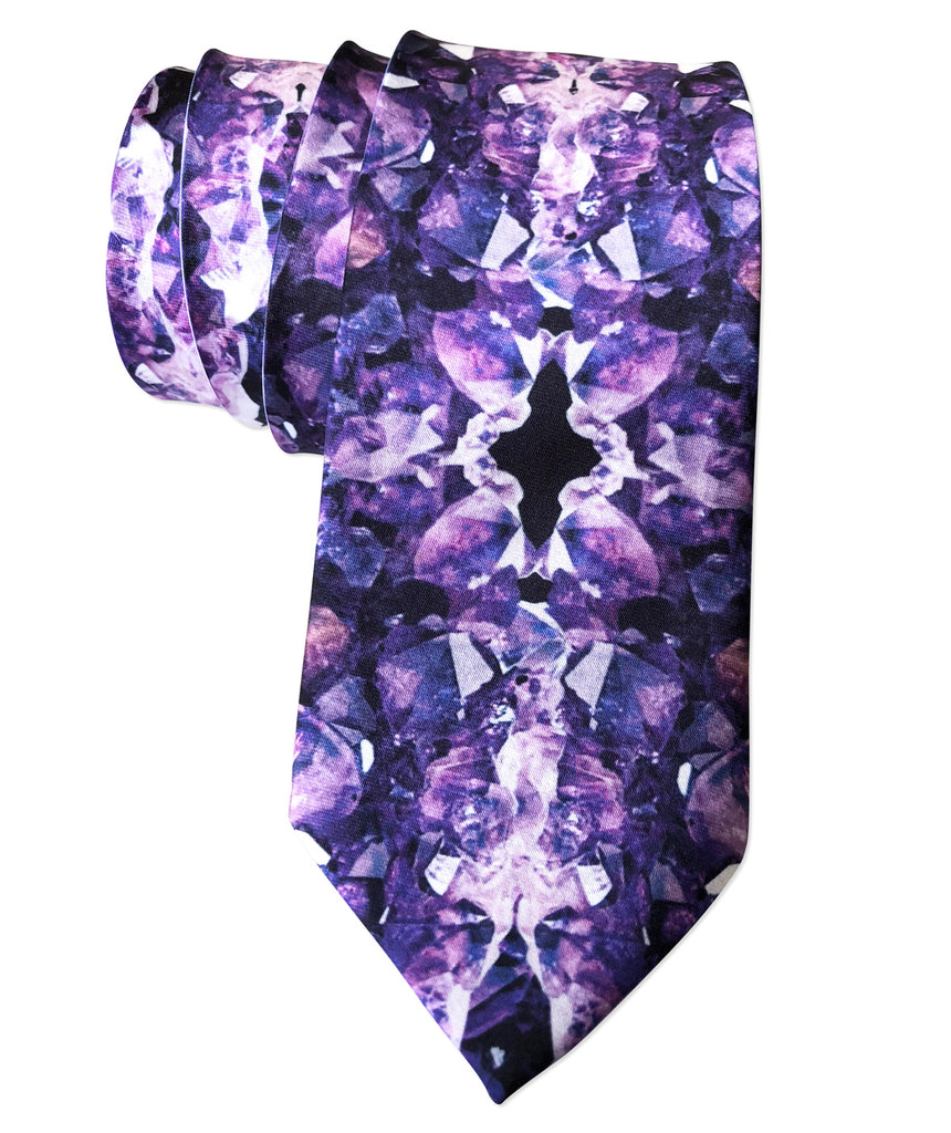 Amethyst Crystal Tie. Geode crystal cluster necktie in intoxicating royal purple shades. Get your woo on and gaze deep into this tie, feel the good vibes. New from Cyberoptix!