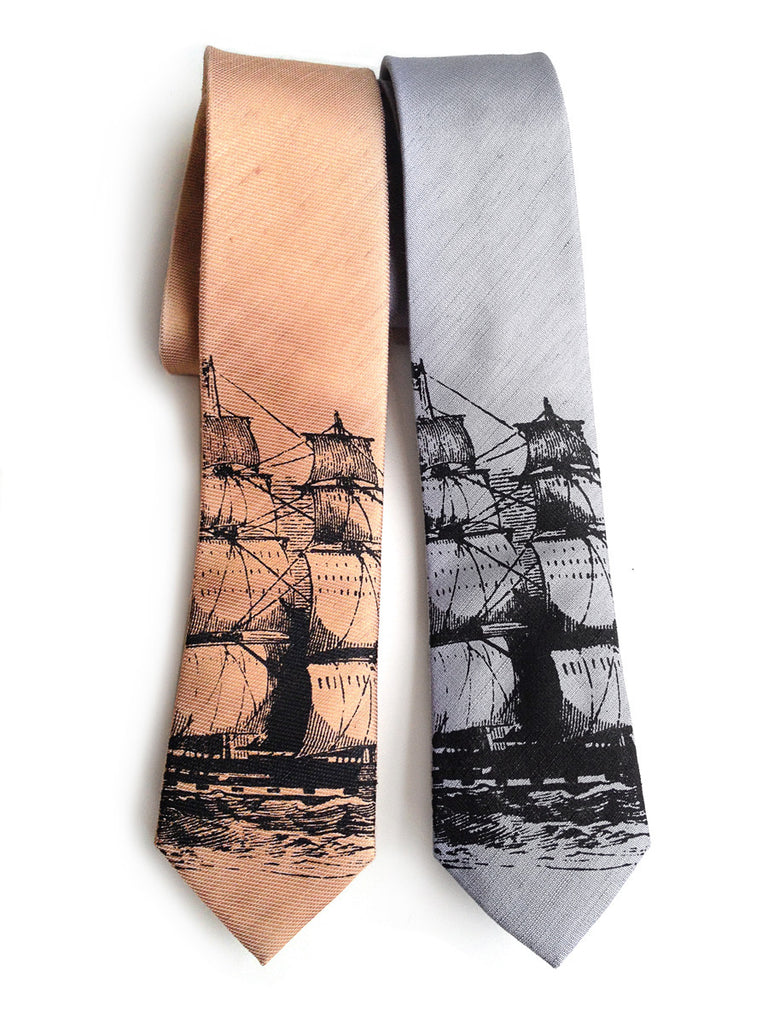Clipper Ship Linen Necktie. Nautical Print Tie