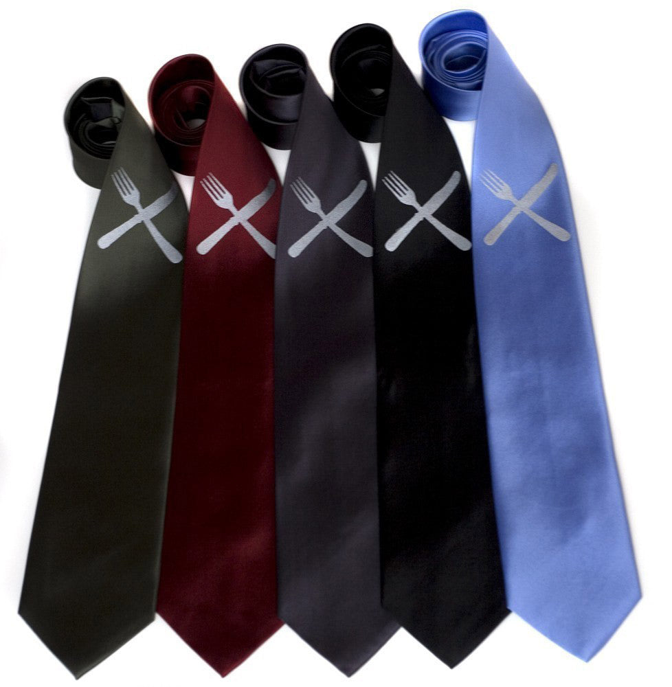 Knife & Fork Silk Necktie. Eat Me Tie (Oh how rude!) Actually, we're very in favor of dressing well and exhibiting proper table manners at all times, whether down the rabbit hole or in a fine restaurant.
