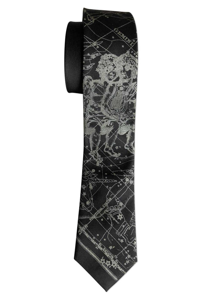 Gemini Necktie, The Twins. Zodiac Constellation Star Chart Tie
