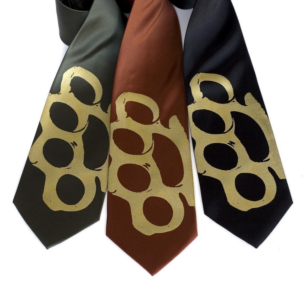Brass knuckles necktie. Wanna give someone a knuckle sandwich? Do it in style.