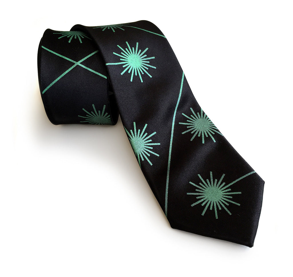 Laser Radiation Warning Silk Necktie. Don't Stare into beam! You'll put your eye out! We made a pattern from the classic "Class II or Higher" laser safety warning label. Rock this whether you love entertaining cats with laser pointers, have a laser cutter at your maker space, or innovate anything that goes pew pew pew!