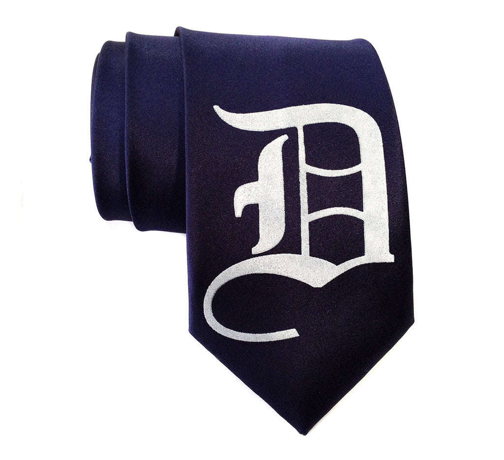 Old English D Necktie. A Detroit spin on our custom Old English font initial tie. Show your hometown pride when a t-shirt won't cut it! We proudly hand print them all in our historic Eastern Market studio in Downtown Detroit.
