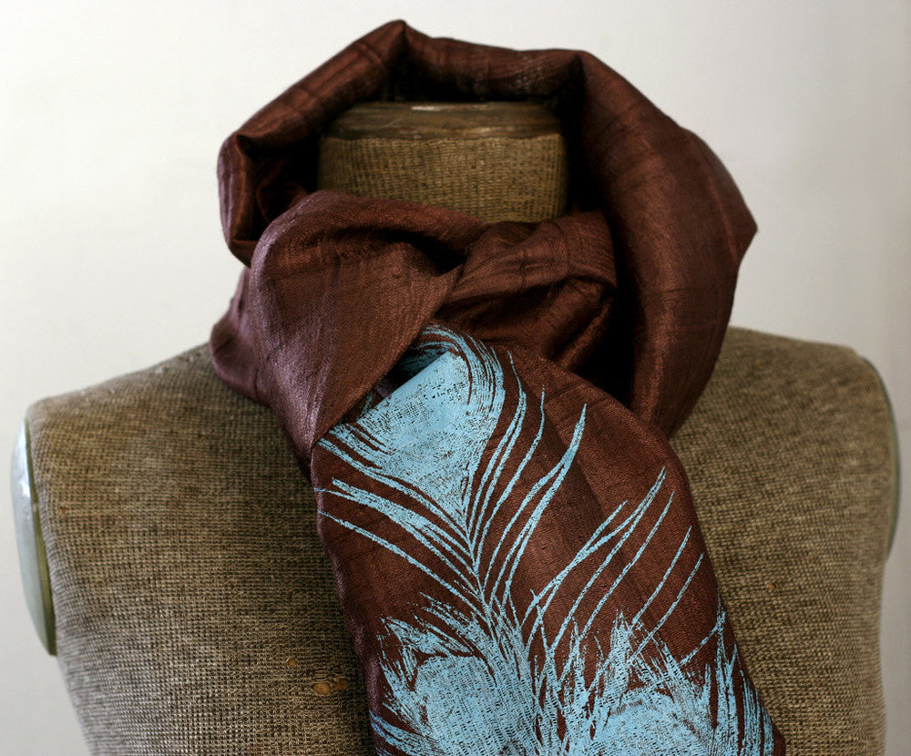 Peacock Feather Silk Scarf