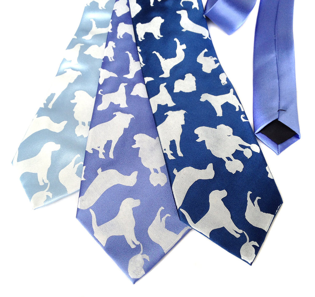 Dog Print Necktie. "Putting on the Dog" microfiber tie. While the exact source of the popular idiom is unknown, many cite that in the mid-1800s, the newly rich would display their wealth by keeping pampered lapdogs. Do you love your canine friends and have a special event you must dress extra fancy for? Perfect! We've got you covered, even if your workday may have gone to the dogs. Please note this is a human sized necktie, not a dog-sized one...unless you have a very very very big dog.