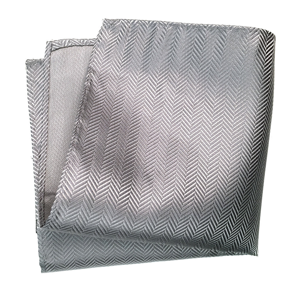 Silver Herringbone Silk Pocket Square. Light grey pocket silk. Simple and minimalist, but with an extra touch of fancy when you need to be fancy! The dark and light grey interlocking threads are so much more fun than a plain satin silk pocket square.