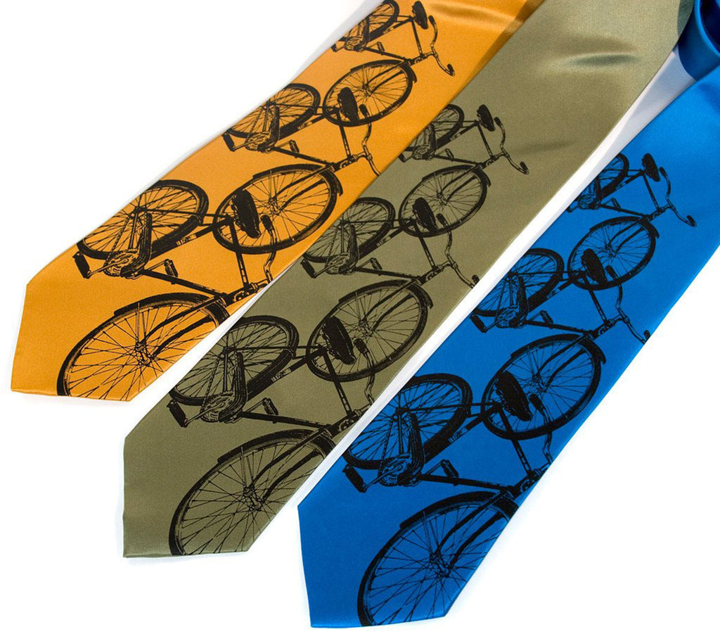 Bicycle Silk Necktie. Triple Cruiser Bike tie. Whether you have your sights on the Tour de France or are going for a leisurely pedal around the block, show your cycling pride even when out of the saddle. Original illustration.